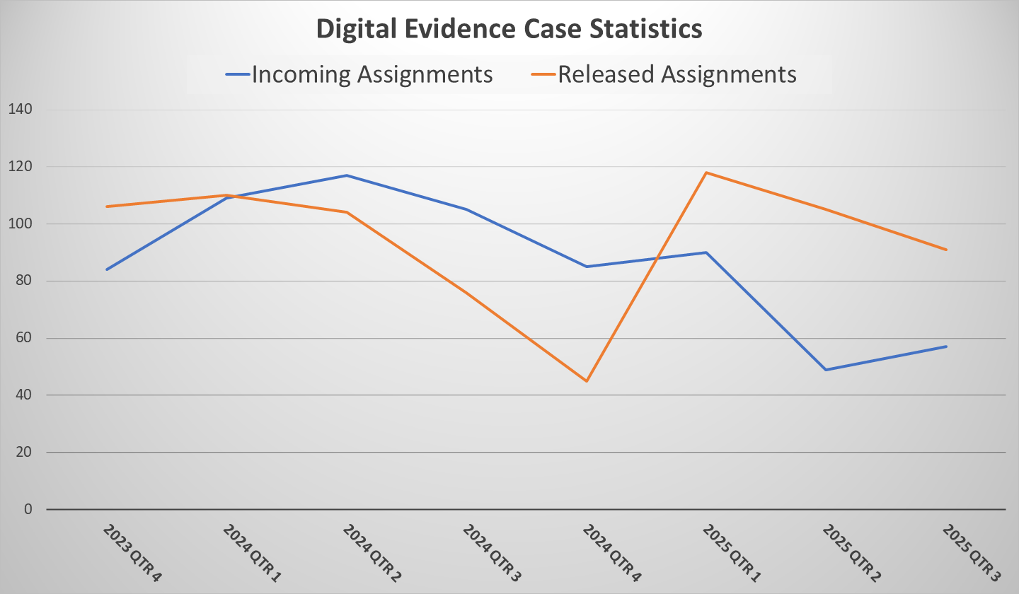 Our mission is to use specialized tools and techniques to recover data from electronic devices used or involved in criminal cases. From laptops and cell phones to gaming consoles and Internet of Things (IoT) devices, an increasing number and variety of gadgets are being used by both victims and perpetrators of crimes. The data stored on these items can include: web browser history, location data, messages and call records, and even user activity information as detailed as step counts and heart rate details! Collectively, this information can provide significant insight into the events and activity associated with a particular crime or incident. Digital Evidence analysts use advanced forensic tools and techniques to retrieve data, frequently encountering and overcoming such challenges as: encryption and passcodes, damaged and corroded devices, and deleted data recovery. Video enhancement is another available tool where we recover and clarify surveillance images and videos that are related to criminal cases. Critical evidence can come from a variety of sources, such as business or in-home video surveillance systems, cell phones, or hidden cameras. Once the data has been recovered, images and videos can be adjusted to reduce artifacts like those left behind by motion blur or inadequate lighting. The goal of this process is to provide the highest quality depiction of the event being investigated, while maintaining the integrity of the evidence. If needed by a court of law, an analyst may present their findings to a jury during a criminal trial.