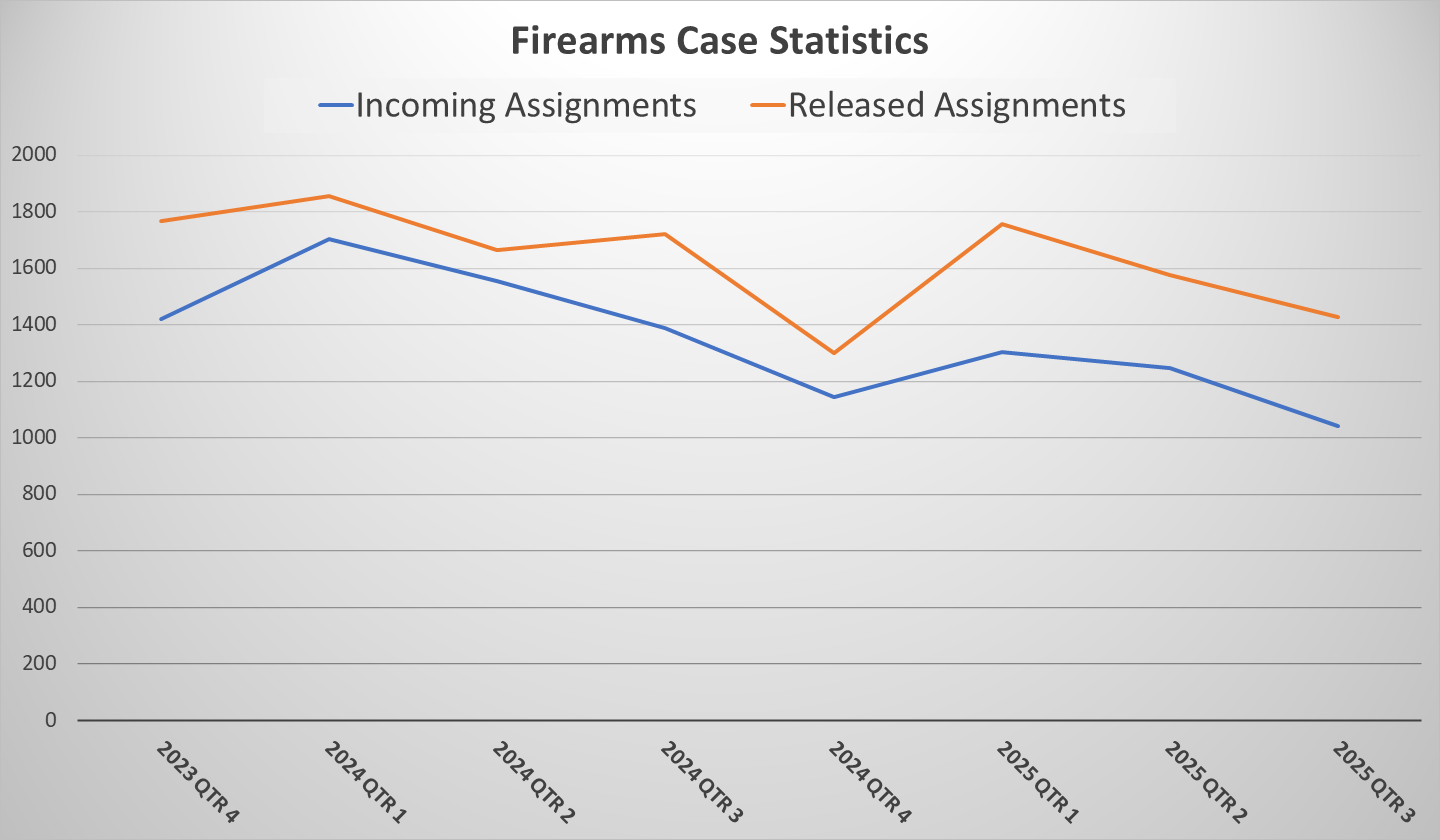 Our mission is to primarily examine bullets, cartridge cases and other ammunition components using comparison microscopy to determine whether or not they were fired in a submitted firearm or from the same unknown firearm. Fired cartridge cases from semi-automatic or fully automatic firearms can be imaged and compared for potential associations to other offenses utilizing the NIBIN (National Integrated Ballistic Information Network) database. Firearm functionality, serial number restoration, and gunshot discharge residue testing of victim clothing can also be performed. If needed by a court of law, an analyst may present their findings to a jury during a criminal trial.