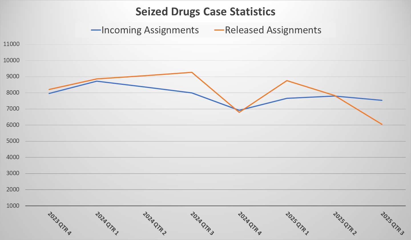 Examples of the types of evidence submitted to this section include plant material, powders and crystals, tablets – both clandestine and pharmaceutical, capsules, liquids, and smoking devices. This field of forensic analysis is ever-evolving, as new substances continuously make their way into illicit markets, particularly in the categories of synthetic cannabinoids (spice) and fentanyl derivatives. Seized Drug cases are the largest percentage of all cases submitted to the FDLE laboratory system. If needed by a court of law, an analyst may present their findings to a jury during a criminal trial.
