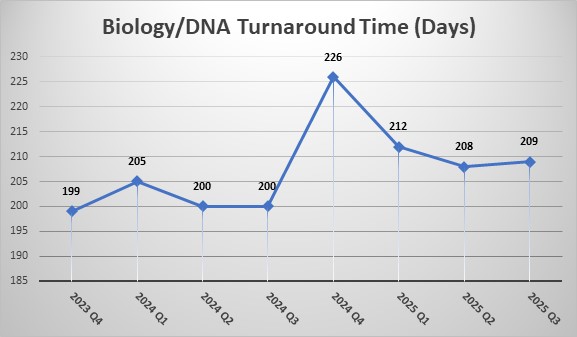 BiologyOur mission is to examine evidence collected from crime scenes in order to detect material and develop DNA profiles for comparisons and investigative purposes. DNA is found in every cell of the body with the exception of mature red blood cells, and is often left behind at crime scenes through blood, semen, saliva, skin cells, hairs and tissues. Our analysts perform STR DNA analysis. Short Tandem Repeats are short segments of repetitive DNA that vary between people, except for identical twins.Biology Services Once a  DNA profile is obtained from evidence, it can be compared to reference standard DNA known to come from a particular individual. It is this comparison that can link a person to the DNA found at a crime scene or eliminate them as a possible donor or source of the DNA. Analysts issue laboratory reports and may also present their findings to a jury during a criminal trial.