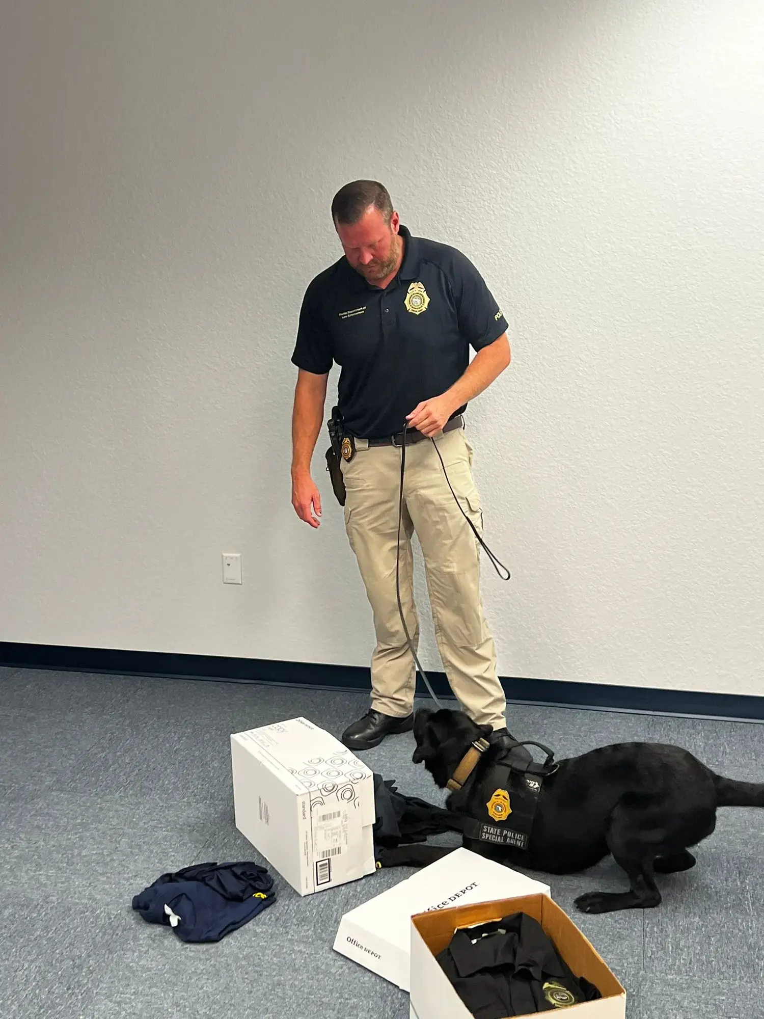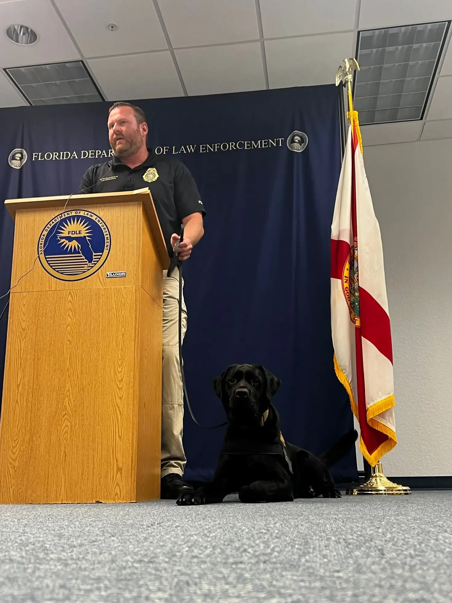 Cache is a 20-month-old black Labrador. He and his handler, FDLE Fort Myers Special Agent Justin Gilmer, together have already assisted in 20 deployments, providing a unique investigative service in solving crimes.