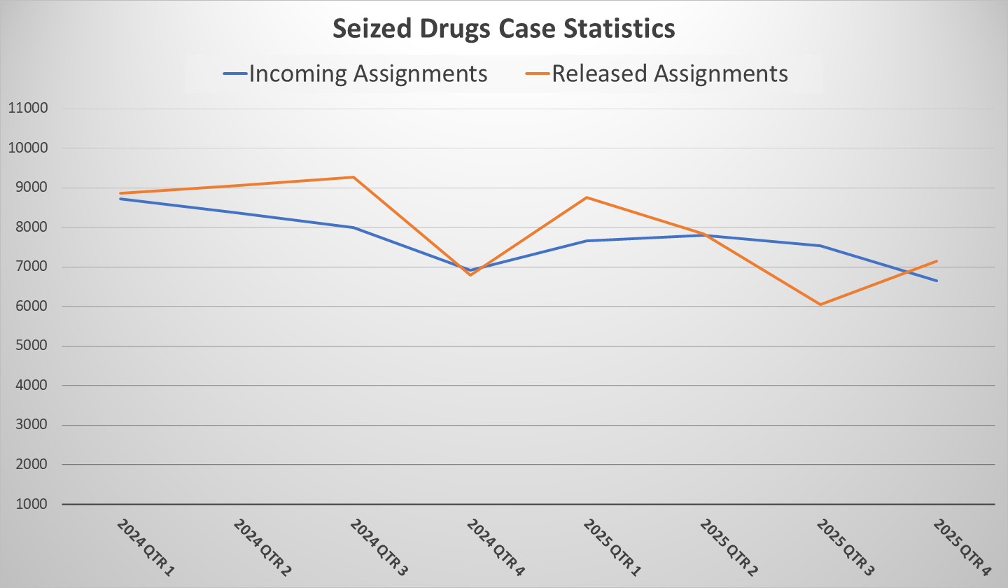 Examples of the types of evidence submitted to this section include plant material, powders and crystals, tablets – both clandestine and pharmaceutical, capsules, liquids, and smoking devices. This field of forensic analysis is ever-evolving, as new substances continuously make their way into illicit markets, particularly in the categories of synthetic cannabinoids (spice) and fentanyl derivatives. Seized Drug cases are the largest percentage of all cases submitted to the FDLE laboratory system. If needed by a court of law, an analyst may present their findings to a jury during a criminal trial.