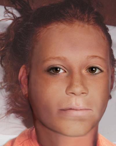 On August 14, 1979, this unidentified deceased female was found in a vacant lot in Las Vegas, Nevada. She had no teeth; only an upper denture was present. Her age was estimated to be 17-21 years, clothing was blue, hip hugger jeans, a green or light blue blouse with red, floral embroidery designs and sequins, and no shoes. The jewelry she was wearing was a white-gold metal ring on her right hand, two white metal necklaces, one with a clear plastic heart pendant with a floral design, and one with a turquoise stone.