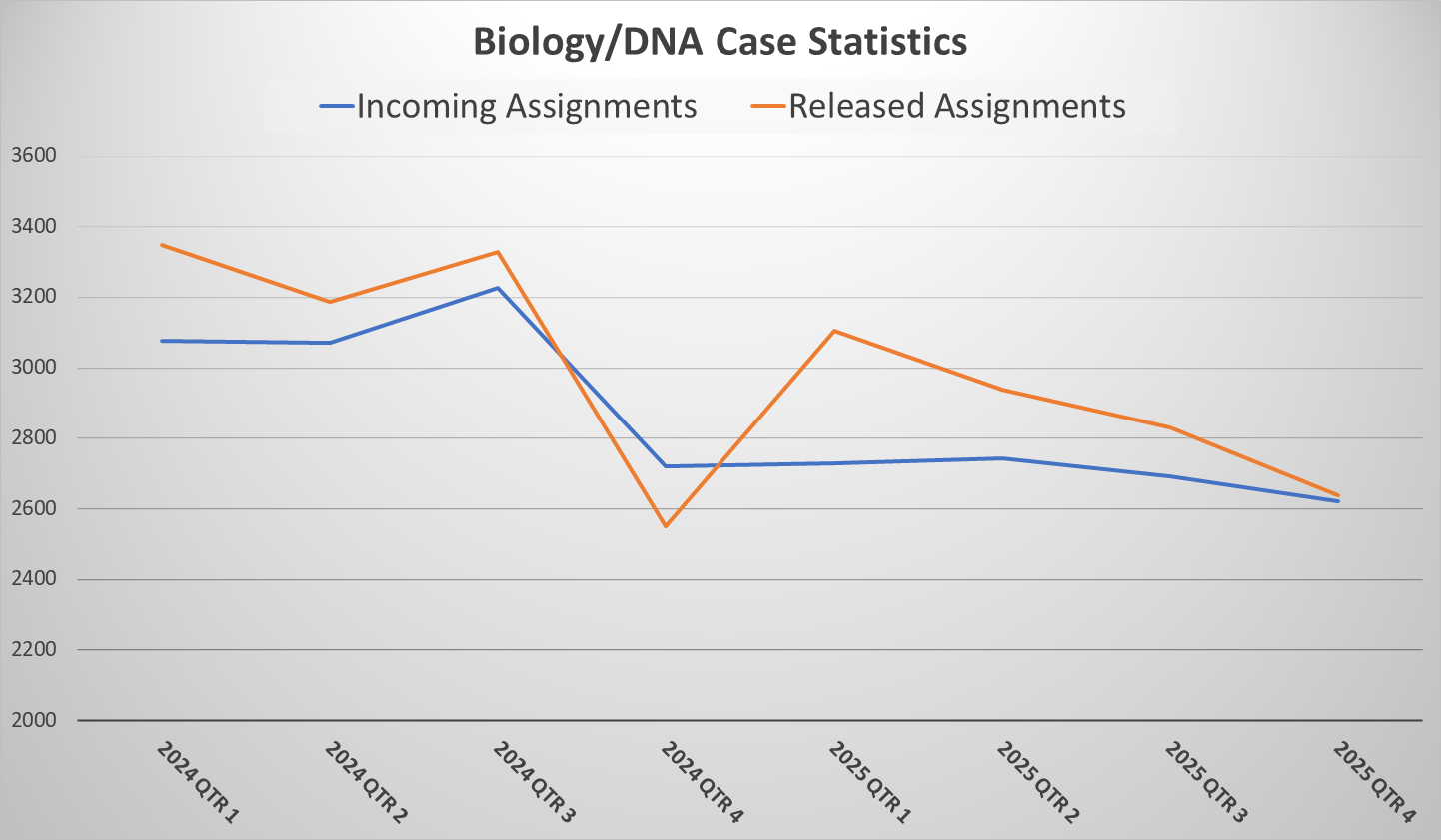 Our mission is to examine evidence collected from crime scenes in order to detect material and develop DNA profiles for comparisons and investigative purposes. DNA is found in every cell of the body with the exception of mature red blood cells, and is often left behind at crime scenes through blood, semen, saliva, skin cells, hairs and tissues. Our analysts perform STR DNA analysis. Short Tandem Repeats are short segments of repetitive DNA that vary between people, except for identical twins. Once a DNA profile is obtained from evidence, it can be compared to reference standard DNA known to come from a particular individual. It is this comparison that can link a person to the DNA found at a crime scene or eliminate them as a possible donor or source of the DNA. Analysts issue laboratory reports and may also present their findings to a jury during a criminal trial.
