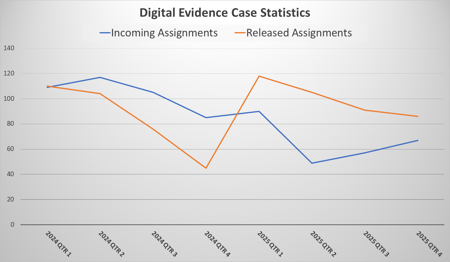 Our mission is to use specialized tools and techniques to recover data from electronic devices used or involved in criminal cases. From laptops and cell phones to gaming consoles and Internet of Things (IoT) devices, an increasing number and variety of gadgets are being used by both victims and perpetrators of crimes. The data stored on these items can include: web browser history, location data, messages and call records, and even user activity information as detailed as step counts and heart rate details! Collectively, this information can provide significant insight into the events and activity associated with a particular crime or incident. Digital Evidence analysts use advanced forensic tools and techniques to retrieve data, frequently encountering and overcoming such challenges as: encryption and passcodes, damaged and corroded devices, and deleted data recovery. Video enhancement is another available tool where we recover and clarify surveillance images and videos that are related to criminal cases. Critical evidence can come from a variety of sources, such as business or in-home video surveillance systems, cell phones, or hidden cameras. Once the data has been recovered, images and videos can be adjusted to reduce artifacts like those left behind by motion blur or inadequate lighting. The goal of this process is to provide the highest quality depiction of the event being investigated, while maintaining the integrity of the evidence. If needed by a court of law, an analyst may present their findings to a jury during a criminal trial.