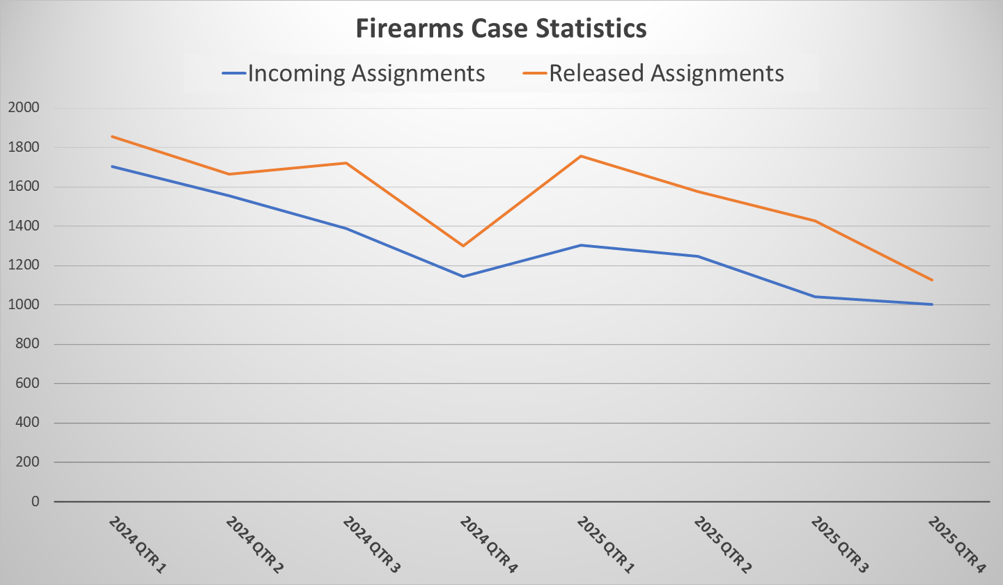 Our mission is to primarily examine bullets, cartridge cases and other ammunition components using comparison microscopy to determine whether or not they were fired in a submitted firearm or from the same unknown firearm. Fired cartridge cases from semi-automatic or fully automatic firearms can be imaged and compared for potential associations to other offenses utilizing the NIBIN (National Integrated Ballistic Information Network) database. Firearm functionality, serial number restoration, and gunshot discharge residue testing of victim clothing can also be performed. If needed by a court of law, an analyst may present their findings to a jury during a criminal trial.