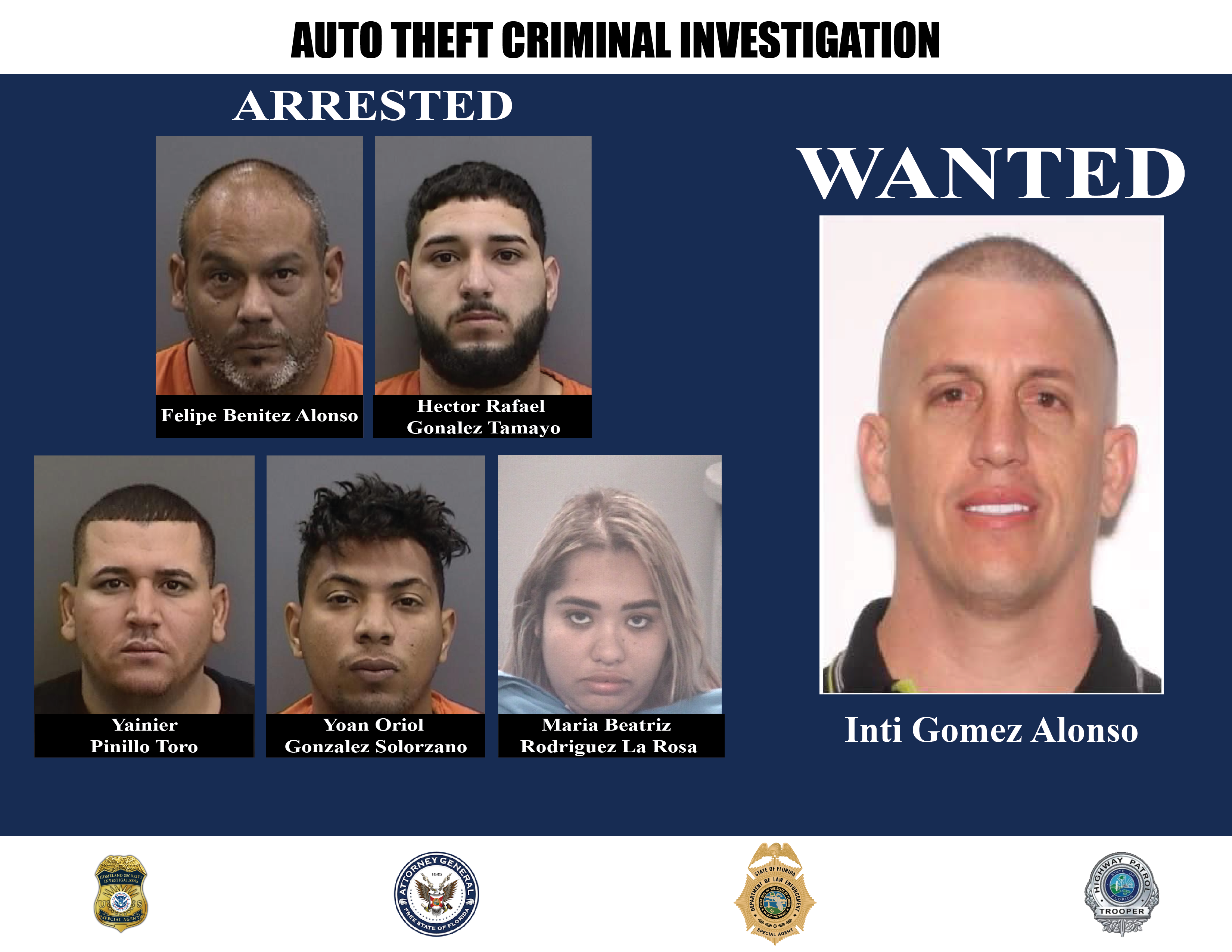 “Thanks to the help of our law enforcement partners, six criminal aliens who stole upward of 80 cars will be brought to justice by our Statewide Prosecutors,” said